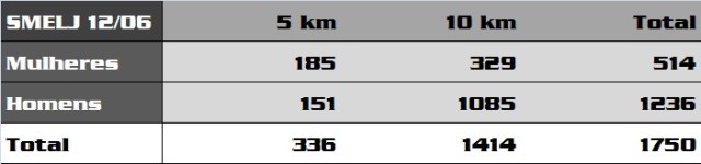 Nos 5 km feminino, com 22min 58seg, Lucirda Aparecida terminou em primeiro lugar, seguida de Vera Lucia Guedes e Elenise Matias. No masculino, Vagner Silva ganhou a prova novamente, com o tempo de 18min 12seg, seguido Julio Gerber e Laudemir Ramson.