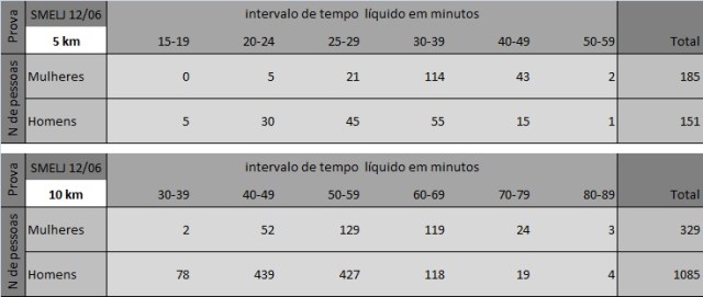 Tabela com a divisão do tempo líquido de conclusão de prova.