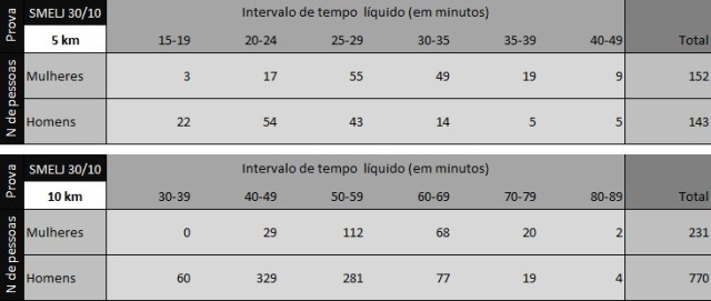 A equipe G5 Esportes – Curitiba Run fez um resumo da participação dos inscritos, com uma tabela do número total de participantes em cada prova: