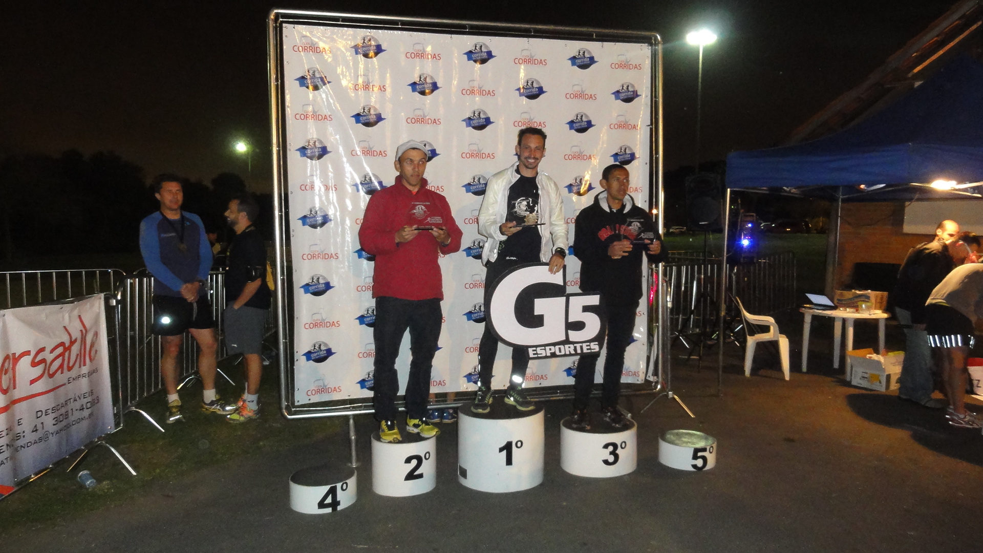 Pela primeira vez a G5 formou uma equipe para participar, fomos em 10 guerreiros, 5 homens e 5 mulheres, somente para participar, conhecer a prova e curtir o evento (já que a disputa na categoria mista só obriga a participação de 2 mulheres). O grupo da madrugada teve a participação do Duran (2x), Flavio, Cristela, Gustavo e Fran. Largando as 6h15 da manhã eles percorreram os 6 primeiros trechos, fechando 54km em 4h17min. De manhã o clima ajudou, apesar de abafado, o sol ficou entre as nuvens e estava agradável correr. O grupo da manhã teve a participação do Rogério, Malu, Gui (2x), Dagui e Pri, e na parte da manhã e tarde o bicho pegou, ou melhor o SOL!! Largando perto das 10h30, o grupo fechou os outros 54km em 5h13. No total a equipe toda está de parabéns!!! Foram 108km em 9h30min, ritmo final de 5:15/km, terminando entre as 30 melhores equipe da prova! Depois de tantos kms, o melhor foi participar do almoço oferecido pela comunidade no Bosque São Cristovão, e ficar na companhia da galera, curtindo as histórias da prova!