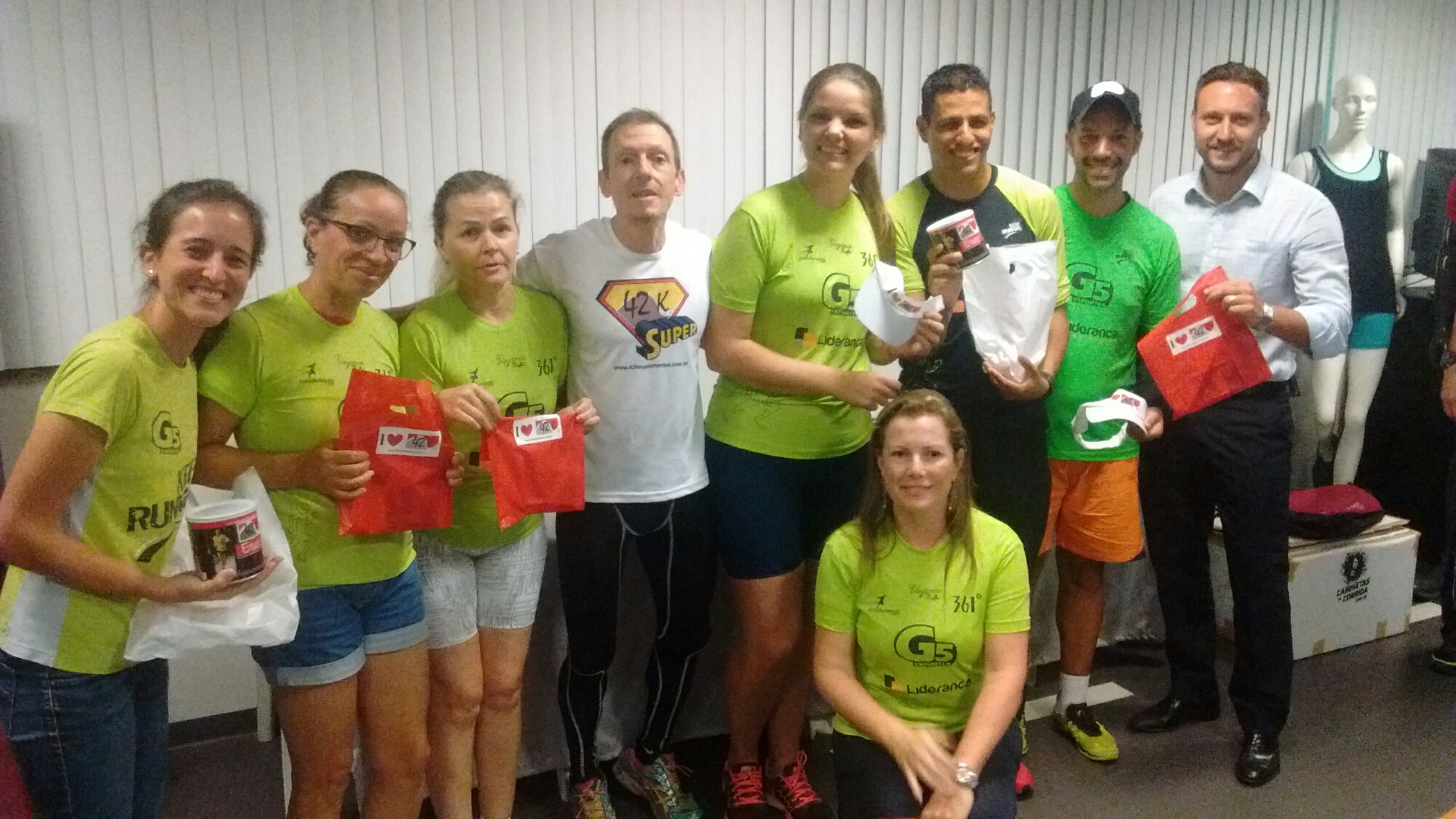 Fizemos nesta quinta feira, 16/mar, um evento especial de lançamento das camisetas 2017 da G5 e apresentação dos novos parceiros!! Gratidão enorme à todos os clientes que puderam prestigiar (mesmo com chuva e muito trânsito), assim como os parceiros que vem acreditando e apoiando nosso trabalho. Que seja um 2017 ainda mais abençoado à todos!! Que venham os treinos, as provas, e as conquistas, com muita saúde e alegria. #LiderançaHomeDesign #361Brasil #EleganceBuffet #LinhaDeChegada #Procorrer #PamplonaAlimentos #NúcleoDeNutrição #VivaAcademia #ExplosionEnergy #UmAmorDePapel #IraíFuteboleEventos #G5esportes #KeepRunning